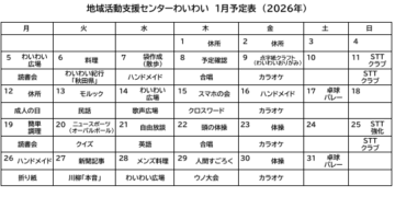 1月のわいわい活動予定です。(午前 10時~12時 午後 13時~15時) 5日(月)…