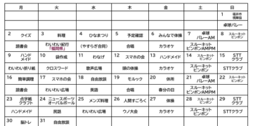 3月のわいわい活動予定です。(午前 10時~12時 午後 13時~15時) 2日(月)…