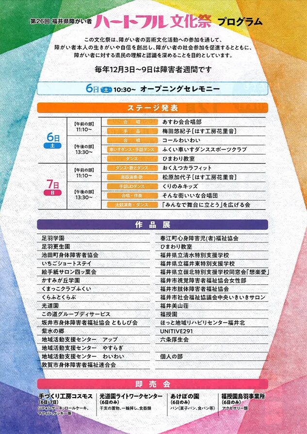 また、「障害者週間」にあわせて令和7年12月6日(土)~7日(日)にショッピングシティベル「あじさいホール」にて開催される『第26回福井県障しょうがい者ハートフル文化祭』では、6日(土)13時30分からのステージ発表でも歌声をお届けします。